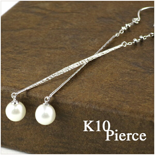 K10WG ボタニカルバー パール ロング ピアス 2P 10金 10k k10 ホワイト ゴールド ナチュラル 葉 6月誕生石 レディース 女性 プレゼント 誕生日 記念日 ギフトBOX ベーシックジュエリー