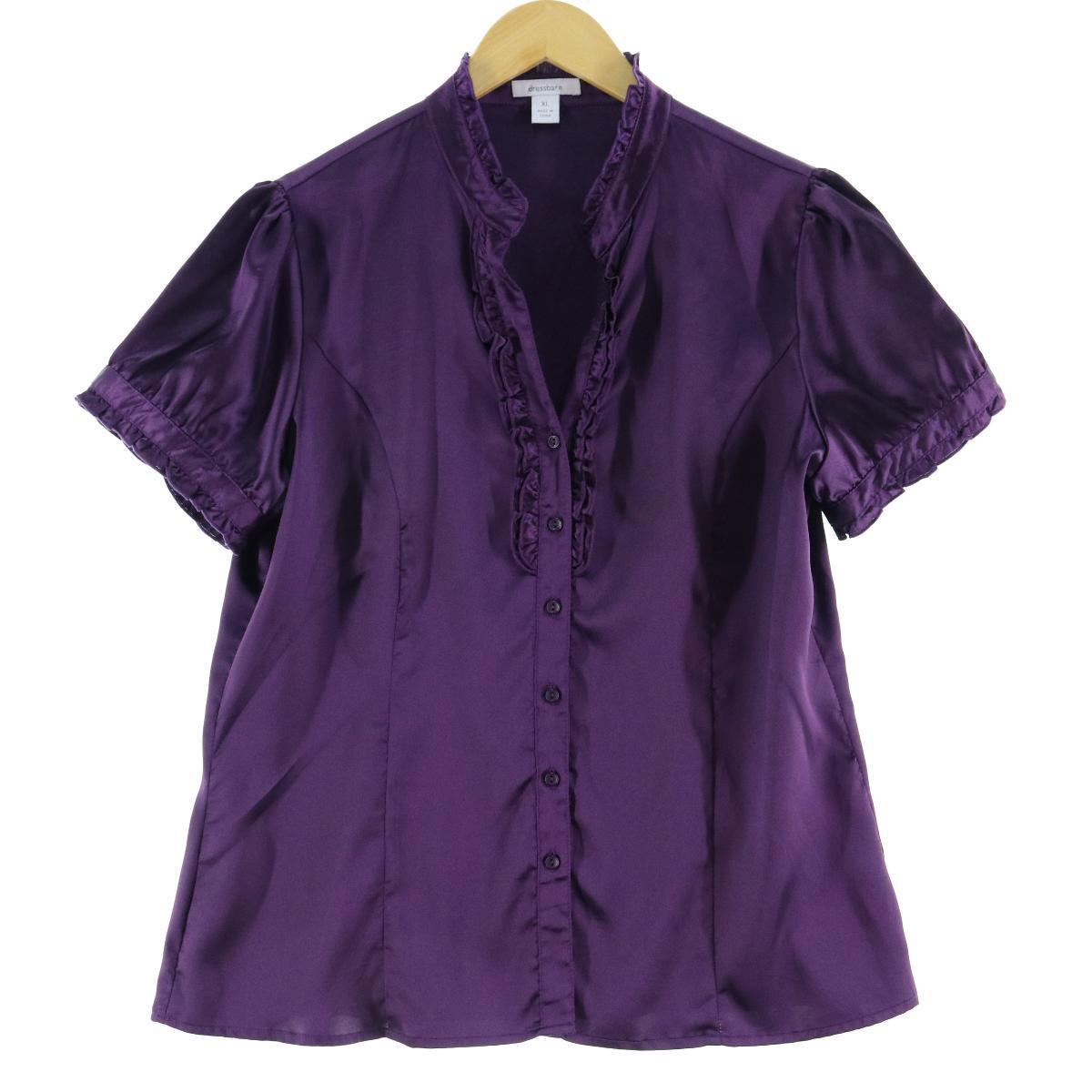 dressbarn フリル サテン 半袖 ブラウス レディースL /eaa069984 【中古】 【200810】【SS2009】【JS2010】【SS2012】