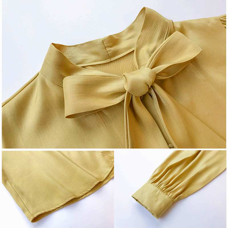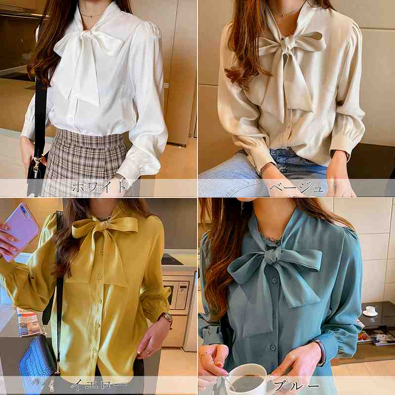サイズ・容量 ドレッシーなリボンタイが女子力を放つブラウスですシワになりにくく、肌触りが気持ちいい素材も嬉しいデニムと合わせてカジュアルコーデもオススメですカラー:ベージュ/ホワイト/イエロー/ブルー素材:ポリエステル100%サイズ:S/M/L[S]着丈:約61cm 肩幅:約34cm 袖丈:約56cm ゆき:約73cm 身幅:約45cm 胸囲:約90cm[M]着丈:約62cm 肩幅:約35cm 袖丈:約57cm ゆき:約74.5cm 身幅:47約cm 胸囲:約94cm[L]着丈:約63cm 肩幅:約36cm 袖丈:約58cm ゆき:約76cm 身幅:約49cm 胸囲:約98cm裏地:なし伸縮性:なし透け感:淡色のみあり