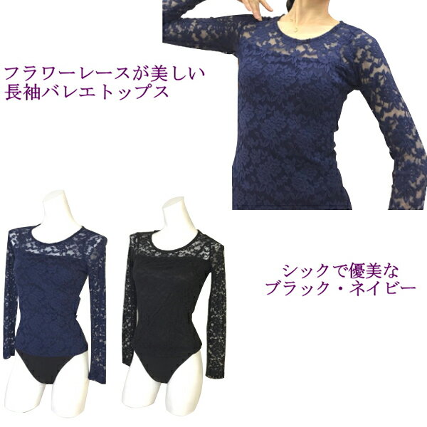バレエ トップス 総レース 長袖で二の腕細見え♪ 大人バレエダンサーのために作りました! バレエ 社交ダンスなど 花柄レース 大人 レディース バレエ用品 ミニヨン #レースシリーズ バレエ用品 長袖 レッスン 着 エレガント ジュニア